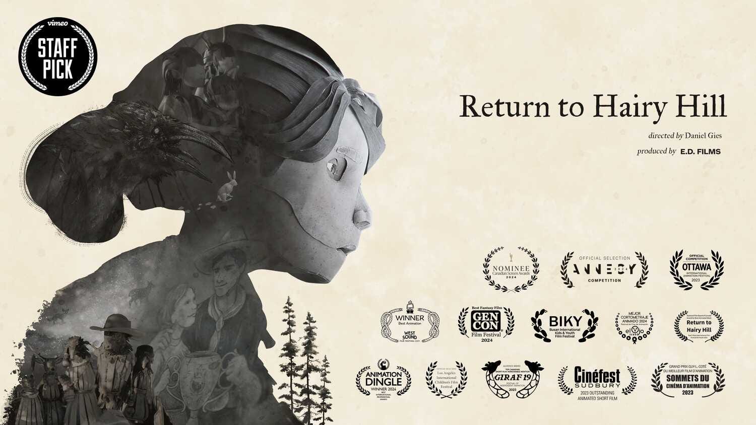 निर्देशक ड्यानियल गाइसले ‘Return to Hairy Hill’ को कथा एमिली पेजसँग मिलेर लेखेका हुन्, जससँग उनले मोन्ट्रियल स्थित स्टुडियो E.D. Films को सह-संस्थापन गरेका थिए। यो छोटो फिल्म गाइसको हजुरआमा, मारी-एन एथे गर्निएरको जीवनको सत्य घटनामा आधारित छ, जो १९४० मा अल्बर्टाको हेरी हिलमा जन्मेकी थिइन्।