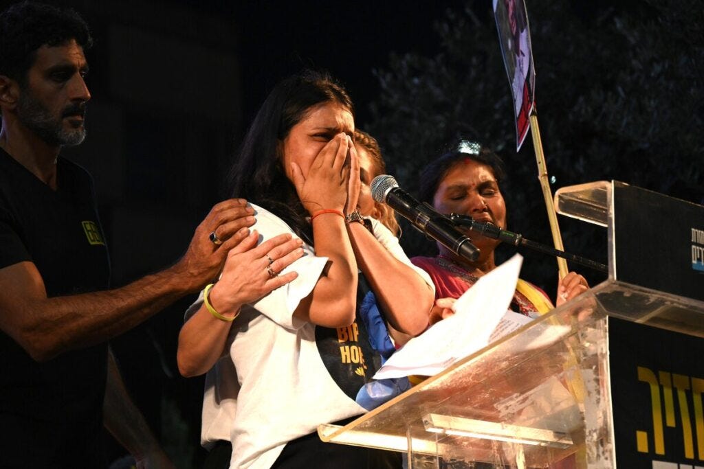 बन्धक रिहाइका लागि गरिएका र्याली र प्रदर्शनीमा दुई आँखाबाट बगिरहेका अश्रुधाराले सारा भिडको ध्यान खिचेको छ । ती आँसु एक आमा र एक बहिनीका हुन्, जो दुई वर्षदेखि हराइरहेका आफ्ना छोरा र दाजु विपिन जोशीको खोजी गर्दै यसै हप्ता इजरायल आएका थिए ।